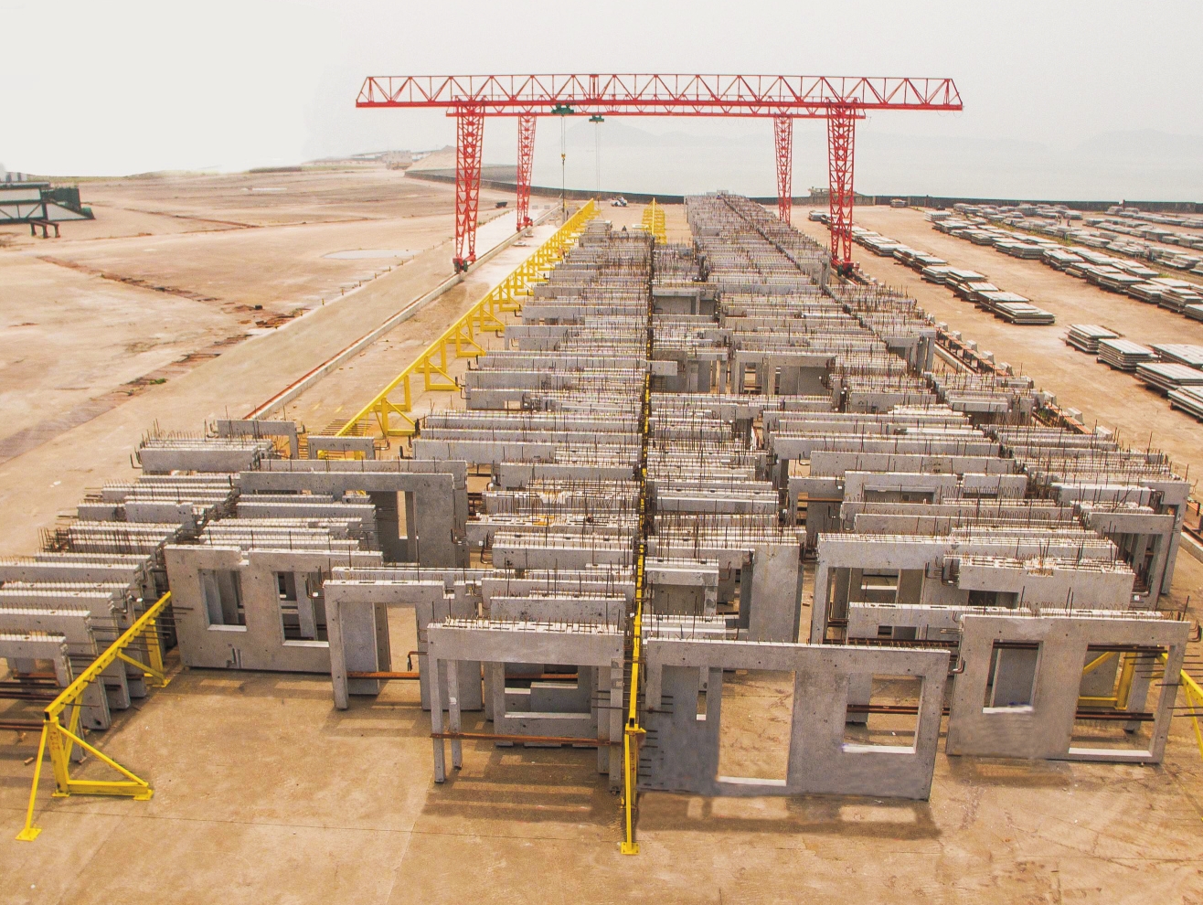 公司位于溫嶺東海之濱,松門鎮(zhèn)龍擔(dān)嶼裝配式建筑工業(yè)化科技產(chǎn)業(yè)園區(qū)內(nèi)。園區(qū)總占地面積700余畝,其中裝配式PC構(gòu)件生產(chǎn)占地200余畝,擁有30000㎡工業(yè)廠房和150畝構(gòu)件堆場(chǎng),以及25000㎡的辦公、住宿、食堂、娛樂場(chǎng)所,投入國(guó)內(nèi)先進(jìn)的自動(dòng)化環(huán)形流水生產(chǎn)線1條,固定模臺(tái)生產(chǎn)線4條,規(guī)劃年產(chǎn)預(yù)制構(gòu)件約10萬立方砼,可生產(chǎn)疊合樓板、樓梯、內(nèi)外墻板、梁柱、陽臺(tái)、空調(diào)板等不同類型的構(gòu)件。